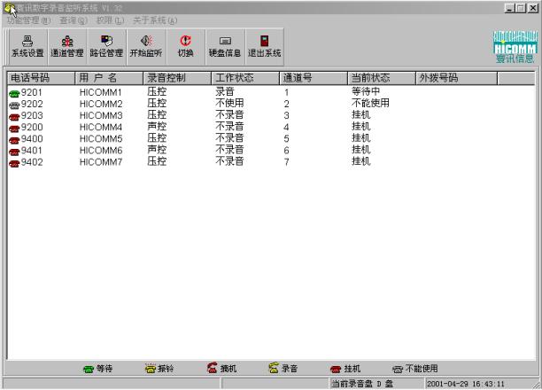 系統(tǒng)管理員根據(jù)權(quán)限可以對系統(tǒng)的任一路電話進(jìn)行監(jiān)聽,此時(shí)被監(jiān)聽的說話雙方絲毫不會有所察覺,