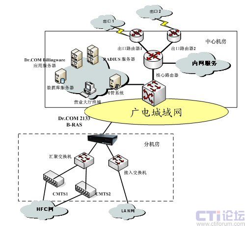 系統(tǒng)組成:由寬帶計費及業(yè)務(wù)綜合管理系統(tǒng)軟件、硬件平臺組成。