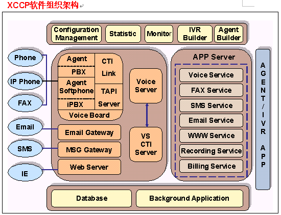 是XCCP的核心組件之一,由聲軟科技的拳頭產品VoiceServer擔當重任,實現呼叫中心系統(tǒng)中自動語音所有功能,集語音、傳真、TTS、短信和語音識別技術為一體,為客戶建設多媒體呼叫中心提供技術基礎。