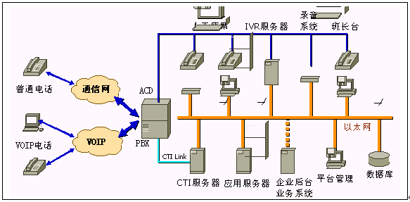 。。《XCCP呼叫中心系統(tǒng)》平臺(tái),主要由PBX交換機(jī)、CTI服務(wù)器、IVR系統(tǒng)、應(yīng)用服務(wù)器、數(shù)據(jù)庫(kù)服務(wù)器、TTS系統(tǒng)、語(yǔ)音識(shí)別系統(tǒng)和座席系統(tǒng)等硬件設(shè)備和系統(tǒng)應(yīng)用軟件組成。它以電話服務(wù)為主要服務(wù)方式、結(jié)合計(jì)算機(jī)信息系統(tǒng)的資料數(shù)據(jù),為用戶提供全方位的服務(wù)。