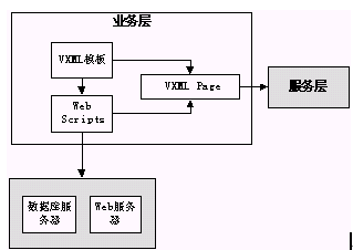 通過上圖可以看出,二次開發(fā)的主要任務(wù)就是業(yè)務(wù)層的開發(fā),簡(jiǎn)單的說,就是以Voice XML為核心,以Web Scripts語言為業(yè)務(wù)接口,形成完整的業(yè)務(wù)流程交由服務(wù)層處理。
