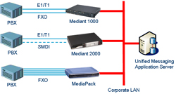 通過利用語音識別和一些新一代技術(shù),使用臺式機(jī)、移動設(shè)備或普通電話就可以對系統(tǒng)進(jìn)行統(tǒng)一訪問。 對于此類系統(tǒng),可以在 PBX 和 UM 服務(wù)器之間插入 AudioCodes 網(wǎng)關(guān),從 TDM 變換到統(tǒng)一消息傳遞系統(tǒng)選擇使用的 VoIP 協(xié)議:SIP。