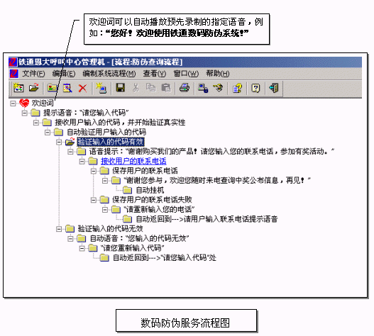 鄭州鐵通的"小成本"源于:采用了價(jià)廉物美的"鐵通恩大呼叫中心"系統(tǒng)平臺(tái),充分利用"恩大服務(wù)流程編制器",直接編制"數(shù)碼防偽服務(wù)流程"。從搭建系統(tǒng)平臺(tái),到防偽服務(wù)投入使用,前后只用了半天時(shí)間。