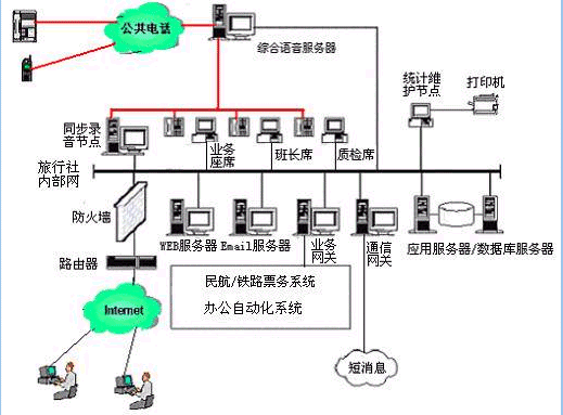 對(duì)于20個(gè)以下人工座席的中小型旅行社客戶(hù)服務(wù)中心系統(tǒng),則建議使用基于計(jì)算機(jī)語(yǔ)音板卡的方式,可以減少投資,同時(shí)具有良好的系統(tǒng)性能;對(duì)于大型的旅行社客戶(hù)服務(wù)中心系統(tǒng),可選用排隊(duì)交換機(jī)作為語(yǔ)音接入設(shè)備,以保障系統(tǒng)的高可靠性和穩(wěn)定性;大大提高了系統(tǒng)的適應(yīng)面。