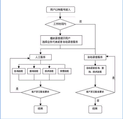 客戶也可以選擇自動(dòng)語音服務(wù)方式,根據(jù)系統(tǒng)的語音提示輸入按鍵,選擇類別,將自己所需要的服務(wù)要求以及自己的聯(lián)系方式信息以留言錄音的方式保存在系統(tǒng)中。系統(tǒng)同時(shí)還支持自動(dòng)傳真方式,客戶可以通過傳真機(jī)進(jìn)入本系統(tǒng),通過按鍵選擇傳真方式,將所需要的服務(wù)要求等的文本內(nèi)容傳真給系統(tǒng),系統(tǒng)自動(dòng)接受并存入數(shù)據(jù)庫。