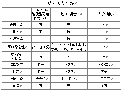 我們知道,呼叫中心的硬件實(shí)現(xiàn)方案/語音接入方式傳統(tǒng)的有兩種:工控機(jī)+語音卡,排隊(duì)交換機(jī)。對比如下: