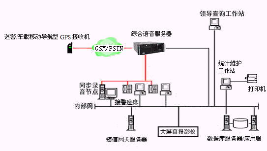 博宇科技110無線報警定位調(diào)度系統(tǒng)指揮調(diào)度中心的物理結(jié)構(gòu)由帶語音板卡的高性能工控機(jī)、CTI服務(wù)器、接警座席、統(tǒng)計維護(hù)管理工作站、數(shù)據(jù)庫服務(wù)器/應(yīng)用服務(wù)器、短消息網(wǎng)關(guān)服務(wù)器、同步數(shù)字錄音工作站、網(wǎng)絡(luò)系統(tǒng)和大屏幕投影儀等以及所開發(fā)的有關(guān)應(yīng)用軟件構(gòu)成。