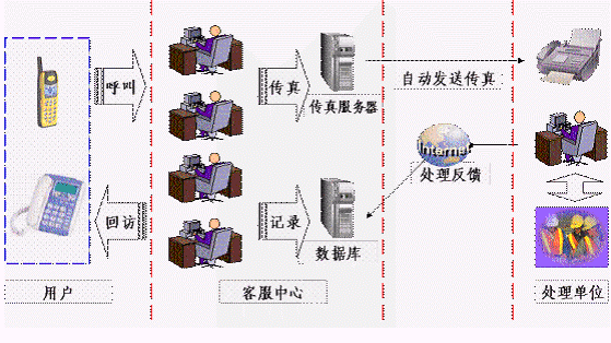 本呼叫中心系統(tǒng)可通過(guò)電話(huà),手機(jī),傳真等各種接入手段接受用戶(hù)的投訴,并及時(shí)處理或通過(guò)特定的通信渠道轉(zhuǎn)交給處理部門(mén)處理,同時(shí)可根據(jù)處理的情況及時(shí)回復(fù)用戶(hù),做到服務(wù)的閉環(huán)。