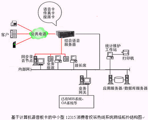 客戶(hù)利用電話(huà)、手機(jī)等撥打特服號(hào)碼12315進(jìn)入中小型12315消費(fèi)者投訴熱線(xiàn)系統(tǒng),本系統(tǒng)依托貴工商局各類(lèi)業(yè)務(wù)技術(shù)支持系統(tǒng)和網(wǎng)絡(luò)系統(tǒng),通過(guò)人工受理或自動(dòng)語(yǔ)音服務(wù)等方式全天24小時(shí)不間斷地為客戶(hù)提供各種服務(wù)。