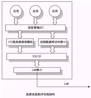 人工座席子系統(tǒng)是人工信息查詢(xún)子系統(tǒng),由業(yè)務(wù)代表、耳機(jī)/話(huà)務(wù)盒、運(yùn)行Windows系統(tǒng)的PC微機(jī)以及相應(yīng)的具體業(yè)務(wù)處理應(yīng)用軟件等組成。耳機(jī)主要用于與客戶(hù)通話(huà),PC機(jī)主要用于記錄客戶(hù)基本信息或服務(wù)信息,或是用于檢索客戶(hù)所需的業(yè)務(wù)信息。