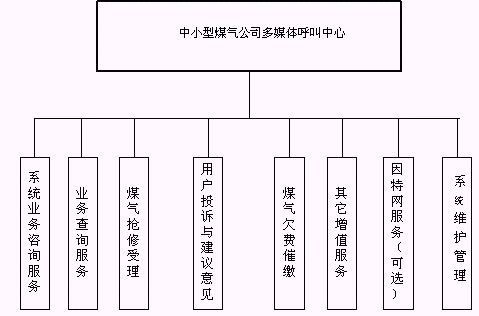 客戶利用電話、手機(jī)等撥打某一特服號(hào)碼(如9xxxx)進(jìn)入中小型煤氣公司多媒體呼叫中心系統(tǒng),本系統(tǒng)依托煤氣公司各類業(yè)務(wù)技術(shù)支持系統(tǒng)和網(wǎng)絡(luò)系統(tǒng),通過人工受理或自動(dòng)語(yǔ)音服務(wù)等方式全天24小時(shí)不間斷地為客戶提供各種服務(wù)。