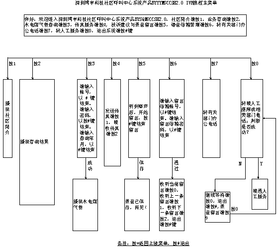 深圳博宇科技社區(qū)呼叫中心系統(tǒng)產品BYSQMSCCSH2.0 IVR流程主菜單如下(請放大到150%瀏覽):