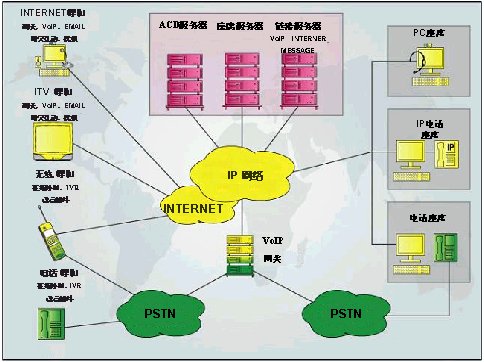 集中管理、分布式座席 | 基于IP網(wǎng)絡(luò)、先進(jìn)的ACD、用戶端軟件 |