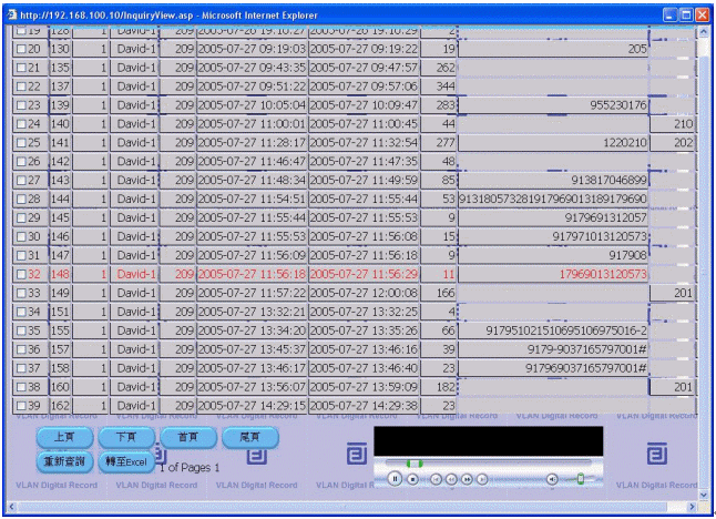 - 各軌道的實時狀態(tài)包括錄音狀態(tài)(錄音中、待命中)、錄音開始時間、錄音結束時間、錄音長度、撥號碼、Caller ID(DTMF或FSK皆可)、模擬線路狀態(tài)等皆能實時顯示。