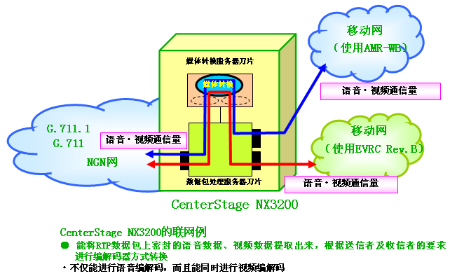 NX3200(以下簡(jiǎn)稱「NX3200」)」上,內(nèi)置了行業(yè)首例運(yùn)營商級(jí)寬帶編解碼轉(zhuǎn)換功能。本裝置迅速對(duì)應(yīng)了ITU-T(注2)制定的國際標(biāo)準(zhǔn)G.711.1(注3)等寬帶編解碼器標(biāo)準(zhǔn),在運(yùn)用移動(dòng)網(wǎng)、固定網(wǎng)的各種語音編解碼器及視頻編解碼器之間,能同時(shí)進(jìn)行大容量通信。本產(chǎn)品即日起開始銷往市場(chǎng)。