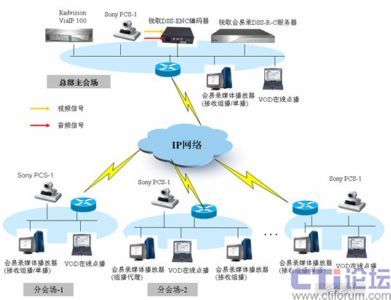 如上圖所示,攀鋼集團視頻會議系統(tǒng)基于IP的組網,MCU采用RADVISION VIAIP100綜合視訊交換平臺,終端采用SONY