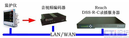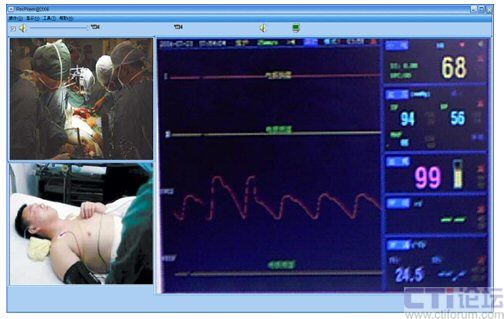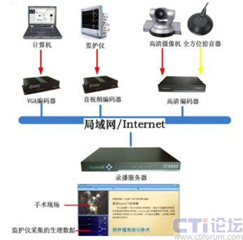 銳取遠(yuǎn)程醫(yī)療系統(tǒng)前端視音頻編碼器將采集到的手術(shù)室監(jiān)護(hù)儀的信號進(jìn)行實(shí)時編碼和壓縮,通過網(wǎng)絡(luò)傳送給多媒體錄播系統(tǒng)遠(yuǎn)程醫(yī)療系統(tǒng)后臺服務(wù)器上。