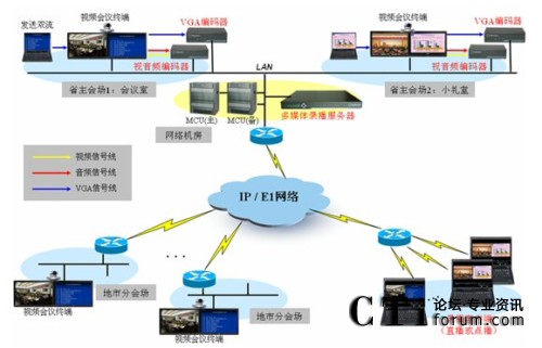 處于系統(tǒng)可靠性的考慮,湖北省政府視頻會議系統(tǒng)采用了E1(H.320)、IP(H.323)雙網(wǎng)絡(luò)備份模式,即要求MCU、終端,錄播服務(wù)器等設(shè)備均支持H.323和H.320模式。