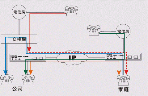 在家里亦可利用公司FONEMOSA遠(yuǎn)易通撥出電話及收聽(tīng)語(yǔ)音信箱 下班后若需處理公務(wù)而需撥打國(guó)際或長(zhǎng)途電話,裝設(shè)FONEMOSA遠(yuǎn)易通之后便可將家里的電話當(dāng)成辦公室分機(jī),舉凡撥接國(guó)際或長(zhǎng)途電話、其它同仁分機(jī),或者聽(tīng)取您的語(yǔ)音留言等等都可。若是跨國(guó)性企業(yè)在海外有多個(gè)據(jù)點(diǎn),可以在各據(jù)點(diǎn)安裝FONEMOSA遠(yuǎn)易通,這樣既便在家里就如同在各據(jù)點(diǎn)上班一樣。(圖標(biāo):On-Net