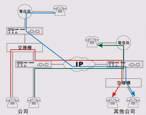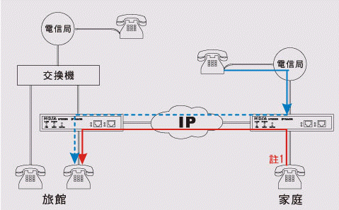 在旅館里亦可利用公司FONEMOSA遠(yuǎn)易通撥出電話及收聽(tīng)語(yǔ)音信箱 將FONEMOSA遠(yuǎn)易通在旅館房間裝設(shè)好后,可以在旅館里免費(fèi)使用各地分公司交換機(jī)所有功能,撥接電話就像在辦公室一樣,也可以撥接其它同仁分機(jī)電話,或者聽(tīng)取語(yǔ)音留言,舉凡各類公司交換機(jī)功能,在旅館里都一樣可以使用。(圖標(biāo): On-Net Call 網(wǎng)內(nèi)互打, 紅色線路)