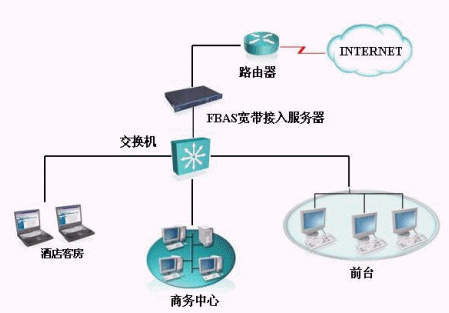 隨著目前寬帶在國內(nèi)應(yīng)用的普及,原先僅在辦公室、家庭能夠獲得的、有限的寬帶接入環(huán)境已經(jīng)不能滿足人們的需求,更多的人希望能夠隨時接入網(wǎng)絡(luò)。作為商務(wù)和娛樂活動的重要場所,越來越多的酒店開始為住店客人提供上網(wǎng)服務(wù)。FutureWorks寬帶計費系統(tǒng)針對酒店上網(wǎng)計費的解決方案結(jié)構(gòu)圖