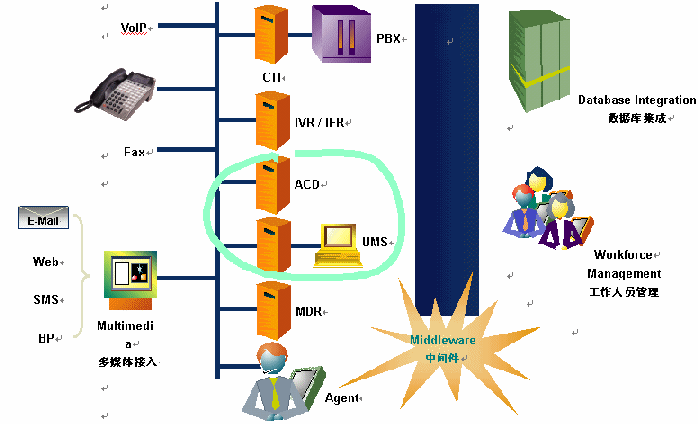 ·采用CSTA接口和外置式ACD自動(dòng)呼叫分配引擎,整個(gè)平臺是硬件無關(guān)的,可以支持目前主流的PBX和語音板卡。