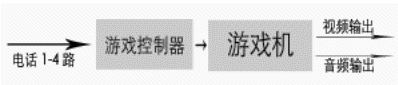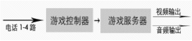 由于許多地區(qū),尤其是縣級市沒有信息平臺,而且許多電視臺愿與電話局直接合作。在這種情況下,電話局和電視臺合作對有線用戶公布 特服號碼,如123456,參與互動游戲的用戶,統(tǒng)一撥打該號碼,電話局提供四條用戶線給互動游戲系統(tǒng),同時對撥打123456的用戶都轉(zhuǎn)到這四條用戶線來,從而接入到互動游戲系統(tǒng),由系統(tǒng)給出語音提示引導(dǎo)用戶參與比賽。由于系統(tǒng)最多允許四個人參與比賽,當(dāng)用戶滿時,撥打游戲熱線的用戶