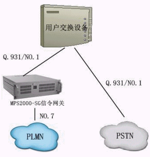 用戶原有的交換設(shè)備不做任何改動(dòng),只將原有的中繼通過原有信令(Q.931/NO.1)與信令網(wǎng)關(guān)對(duì)接,再通過信令網(wǎng)關(guān)分別以不同的信令與PSTN和PLMN對(duì)接。