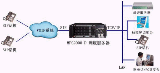 - MPS2000-D調(diào)度服務(wù)器作為一款I(lǐng)P指揮調(diào)度系統(tǒng)通過(guò)SIP協(xié)議,接入VOIP系統(tǒng),實(shí)現(xiàn)對(duì)IP終端用戶的調(diào)度控制;