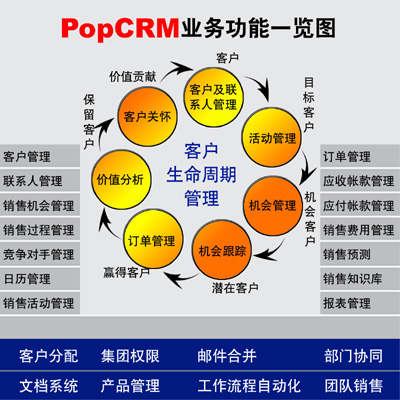 在談到產(chǎn)品特色時(shí),中國大恒信息公司CRM事業(yè)部總經(jīng)理韓志亮先生這樣解釋:"PopCRM采用純Java技術(shù)開發(fā),面向國內(nèi)的中小型企業(yè),專注于對企業(yè)營銷環(huán)節(jié)的管理,幫助企業(yè)形成持續(xù)盈利能力,而這些均在較低的成本下即可實(shí)現(xiàn)。同時(shí),PopCRM還提供了與其他應(yīng)用系統(tǒng)的數(shù)據(jù)接口,使系統(tǒng)的擴(kuò)展性更強(qiáng),應(yīng)用更便捷、高效。"