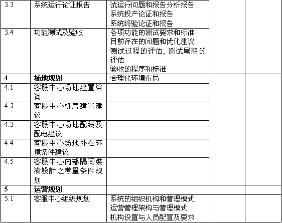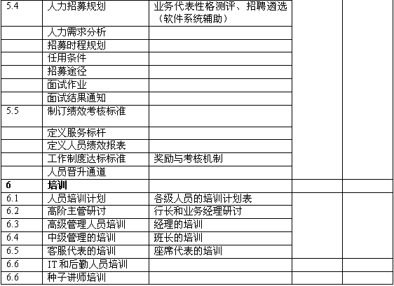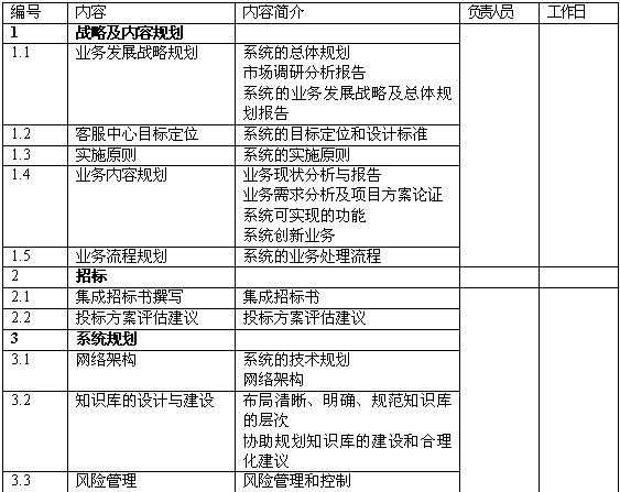 6.提出了未來客戶滿意度、分流柜面比率、產(chǎn)品促銷量等方面的量化比率;針對客服中心的主要業(yè)務(wù)提供量化的目標,并提出達成目標的前提條件;對未來人員和系統(tǒng)規(guī)模提供量化預(yù)估。