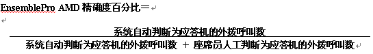 AMD精確度是如何計算的 ?這一點非常重要。EnsemblePro 的AMD精確度采用的是較為保守的算法-僅計算那些被應答的電話。下面的等式是EnsemblePro對AMD精確度的定義: