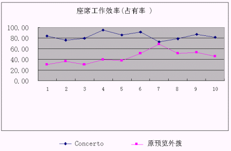 下圖可以看出使用原預覽外撥和采用Concerto預測外撥系統(tǒng)后座席占有率的比較: