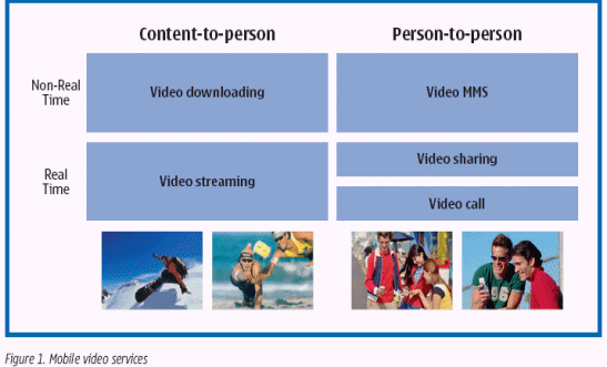 移動終端上的P-to-P視頻通信是從"視頻短信"或視頻MMS開始的,也是基于靜態(tài)圖片的多媒體短信的自然發(fā)展。視頻錄像,現(xiàn)在已經(jīng)被廣泛應(yīng)用在有攝像功能的手機上,它允許用戶去錄制一段視頻片段并將之通過多媒體短信發(fā)送給他人的移動終端。如果接收的終端功能支持并允許,則可在該終端上打開并回放播放片段,或?qū)⑵伪4嬖诮K端內(nèi)存中。