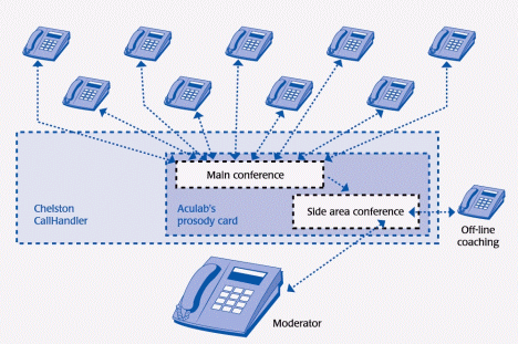 Prosody在同一時(shí)間內(nèi)可實(shí)現(xiàn)248方會(huì)議。RNIB的解決方案能夠同時(shí)進(jìn)行3個(gè)會(huì)議,每個(gè)會(huì)議可達(dá)10個(gè)參與者。之所以限定在10個(gè)參與者之內(nèi),主要是便于盲人或視弱的管理人員管理。此外,也確保了會(huì)議管理員能夠從RNIB的WAN 電話(huà)網(wǎng)絡(luò)或辦公室及家居電話(huà)網(wǎng)絡(luò)接入。與會(huì)者中的一員可以根據(jù)需要與管理員進(jìn)行一對(duì)一談話(huà)。