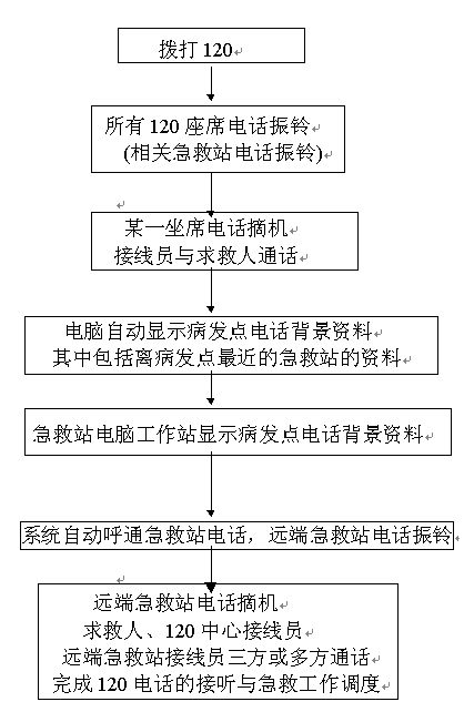120急救中心接到求救電話后,120中心接線員在系統(tǒng)的配合下,自動呼通急救站,實現(xiàn)調(diào)度功能