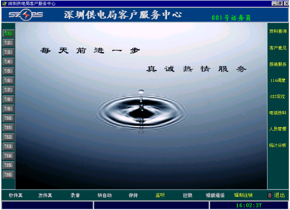 在座席的主畫面的右邊是業(yè)務(wù)功能選擇區(qū),是根據(jù)用戶實際工作的具體要求開發(fā)的。(隨后詳細(xì)介紹供電行業(yè)的業(yè)務(wù)功能模塊)
