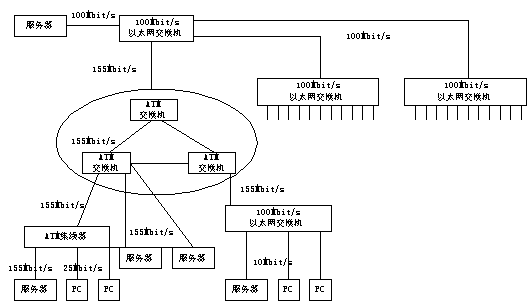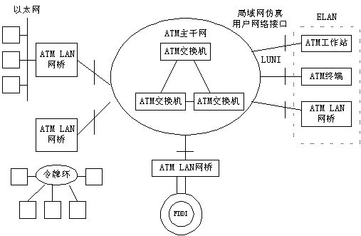 ATM 局域網(wǎng)是指以ATM結(jié)構(gòu)為基本框架的局域網(wǎng)絡(luò),它以ATM局域網(wǎng)交換機為交換點,通過各種ATM接入設(shè)備,如ATM集線器、ATM網(wǎng)卡等將用戶接入局域網(wǎng)。ATM網(wǎng)絡(luò)具有帶寬大,速度高的優(yōu)點,并能提供業(yè)務(wù)質(zhì)量QOS服務(wù),其性能大大優(yōu)于傳統(tǒng)共享式局域網(wǎng),但同時也面臨著高速以太網(wǎng)的挑戰(zhàn)。
