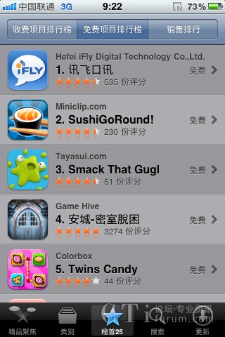 CTI論壇(ctiforum)5月24日消息(記者 張潔):科大訊飛推出的移動互聯(lián)網(wǎng)時代語音創(chuàng)新應(yīng)用——訊飛口訊,自5月18日登陸App Store為用戶提供免費下載應(yīng)用以來,迅即得到了國內(nèi)外蘋果手機用戶的高度關(guān)注和熱烈支持,短短兩天時間之內(nèi)即在App Store免費項目排行榜登頂,并已持續(xù)多日占據(jù)榜首位置。排行榜位置是由用戶下載量、實際應(yīng)用頻率和用戶評價等各項指標綜合評定形成的,充分顯示了廣大“果粉”對于“訊飛口訊”這一創(chuàng)新性應(yīng)用的喜愛與高度認可。