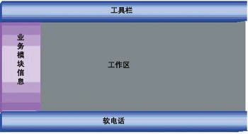 軟電話提供標準的呼叫控制功能,如座席的登錄、注銷等。業(yè)務模塊信息根據該座席的技能設置顯示該座席能夠使用的座席業(yè)務模塊,工作區(qū)是座席使用業(yè)務模塊的區(qū)域,業(yè)務模塊的調入可以是系統(tǒng)根據自動服務傳遞的參數自動彈出,也可以是座席人員手工選擇相應的業(yè)務操作。同時,業(yè)務模塊通過標準的接口和軟電話模塊進行通信,取得或者設置系統(tǒng)的呼叫參數或操作,包括提取系統(tǒng)主被叫號碼、用戶按鍵等。通過工具欄提供系統(tǒng)的菜單、快捷鍵、快捷按鈕的使用。通過這種方式,系統(tǒng)可以隨時增加、修改座席的業(yè)務模塊,而無須修改整個座席端,有利于系統(tǒng)業(yè)務的分步實施,大大縮短了系統(tǒng)的整個建設周期。