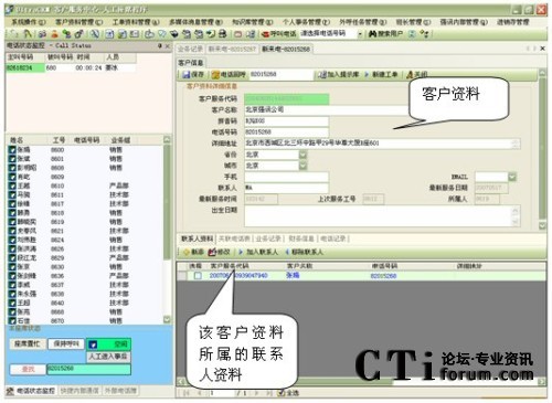 當(dāng)有電話來電時(shí),系統(tǒng)顯示來電號碼及來電人員的客戶資料信息;