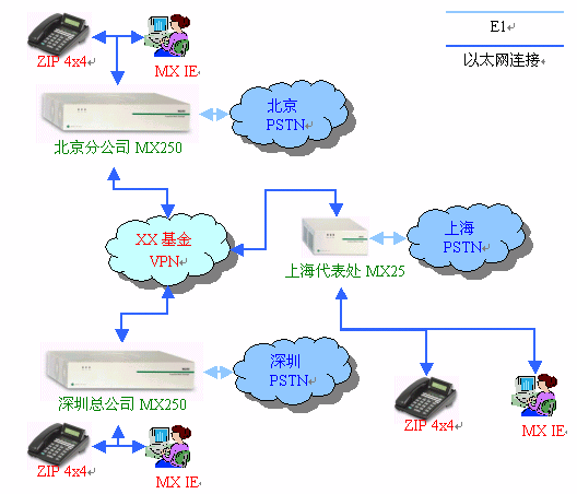XX基金管理有限公司設有深圳總公司、北京分公司、上海分公司三個機構,總公司與分支機構之間電話聯(lián)系非常多,每年都會產生大量電話、傳真費用。并且,隨著業(yè)務的擴展,公司的規(guī)模也在不斷的擴大。如何利用先進的科學技術縮短溝通時間,降低溝通費用,提高企業(yè)應變能力,是企業(yè)應對競爭、增強競爭力的一個重要方面。