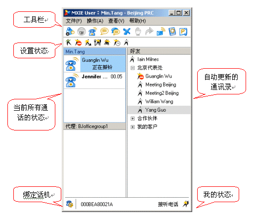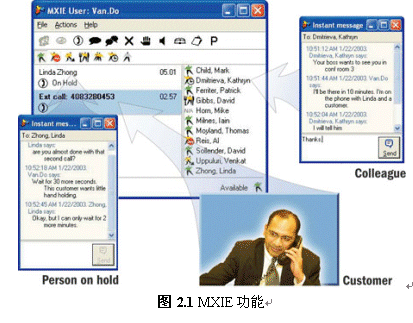 使用MXIE還提供了文本交流、收發(fā)語(yǔ)音郵件、收發(fā)傳真、發(fā)起電話(huà)會(huì)議或視頻會(huì)議、綁定話(huà)機(jī)等多種實(shí)用的溝通功能。除此以外,MXIE還集成了軟件電話(huà)功能,用戶(hù)外出時(shí)可以使用它來(lái)接聽(tīng)或撥打電話(huà)。