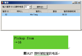 接通后,如果通話內(nèi)容很緊急而又不方便在會議室進(jìn)行溝通,此時(shí),用戶可以按下話機(jī)上的“Park”按鈕,此時(shí)對方通話被導(dǎo)入到一段音樂(背景音中設(shè)定的音樂)。記住屏幕上提示的駐留號碼,即可掛機(jī):