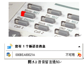 當(dāng)有新消息到達(dá)時(shí),話機(jī)上的“Msg”燈會閃亮,MXIE軟件也會有相應(yīng)提示。