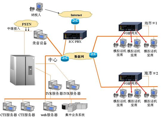 在河北地稅12366原有設(shè)備的基礎(chǔ)上,增加了一臺ICC PBX,開放了若干端口,并在坐席計算機上部署了ICC終端軟件,將12366傳統(tǒng)的第四代呼叫中心,升級為第五代呼叫中心。