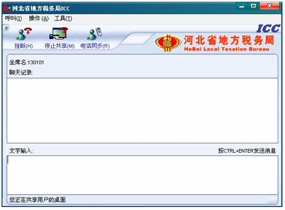 坐席把鼠標放在共享框里時,坐席的鼠標具有優(yōu)先操作納稅人桌面的權(quán)利。即在坐席把鼠標放在共享框里時,納稅人的鼠標將不能使用。在共享時,如果納稅人想操作自己的電腦,坐席需要把鼠標移出共享框。