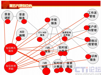 需要保存記錄的,需要做質(zhì)量管理的,大家需要把這個東西保存起來,以便于考核座席,這時候電話錄音的服務(wù)需要改動,座席質(zhì)量管理的界面需要改動,因為以前管理界面是聽錄音的,現(xiàn)在是需要看文本了。接著客戶資料管理也是需要嗎?當(dāng)然需要了,來一個短信以后,盡量把客戶資料能夠屏幕彈出,降低我們的服務(wù)時間,需要改進(jìn)。知識庫需要改動嗎?需要,因為我發(fā)短信的時候,不可能每個字都敲進(jìn)去,需要從知識庫把這個信息拽出來,這時候需要知識庫的服務(wù)。工作流,通過短信也要進(jìn)行一些業(yè)務(wù)的處理。聯(lián)絡(luò)過程也需要管理。這時候戰(zhàn)略出來了,經(jīng)營者說了,我現(xiàn)在通過短信要做營銷了,我要外撥了,和外撥服務(wù)連接出來,還有經(jīng)營者的一些戰(zhàn)略,比如說對于一些比較高的客戶,優(yōu)先分配,降低等待時長。那么這個戰(zhàn)略還包括這些產(chǎn)品生命周期的管理,需要不同的服務(wù)方式,一樣也要通過編輯,策略可以自行調(diào)整。