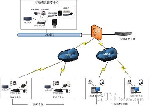 武漢市司法局視頻會議系統(tǒng)包括了1個主會場高清、13個區(qū)局分會場標(biāo)清和159個街道軟件視頻會議點。系統(tǒng)傳輸依托于武漢市司法局業(yè)務(wù)網(wǎng),網(wǎng)絡(luò)呈星型拓?fù)浣Y(jié)構(gòu),中心節(jié)點到各區(qū)局節(jié)點網(wǎng)絡(luò)帶寬為2M,中心節(jié)點到各街道所網(wǎng)絡(luò)為VPN方式通過ADSL撥號連接,全面支持全高清視頻會議,實現(xiàn)高清、標(biāo)清、硬件、軟件混合組網(wǎng)模式。整個系統(tǒng)基于業(yè)界最先進的H.264 High Profile視頻協(xié)議和寬頻語音,最大還原審訊現(xiàn)場真實場景。同時系統(tǒng)還具備音視頻同步錄像、畫中畫疊加錄像、多策略光盤實時備份、本地訊問、遠程指揮等功能,完美實現(xiàn)了審訊工作的數(shù)字化、標(biāo)準(zhǔn)化和網(wǎng)絡(luò)化建設(shè),有效地提高了偵查辦案、協(xié)查辦案的效率,加強了辦案、取證過程的真實性和有效性,增強審訊過程的監(jiān)督與檢查取證,維護司法公正。
