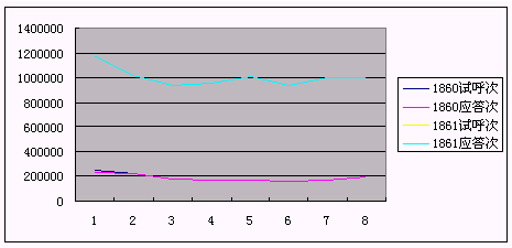 圖二 新1861系統(tǒng)上線前后試呼次數(shù)和應(yīng)答次數(shù)比較